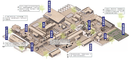 该项作品以将蓝草的种植、印染作坊、产品研创、游览体验、产品销售等环节的系统组织与乡镇既有空间环境的系统改造有机结合,形成独具内涵特色的综合改造计划。这一构想使乡镇的传统工艺文化得到保护和传承,使乡村的产业振兴、农民增富与村镇环境的优化成为一个相互促进、整体可持续的综合事业,也由此催生了富有生命力的地方特色。