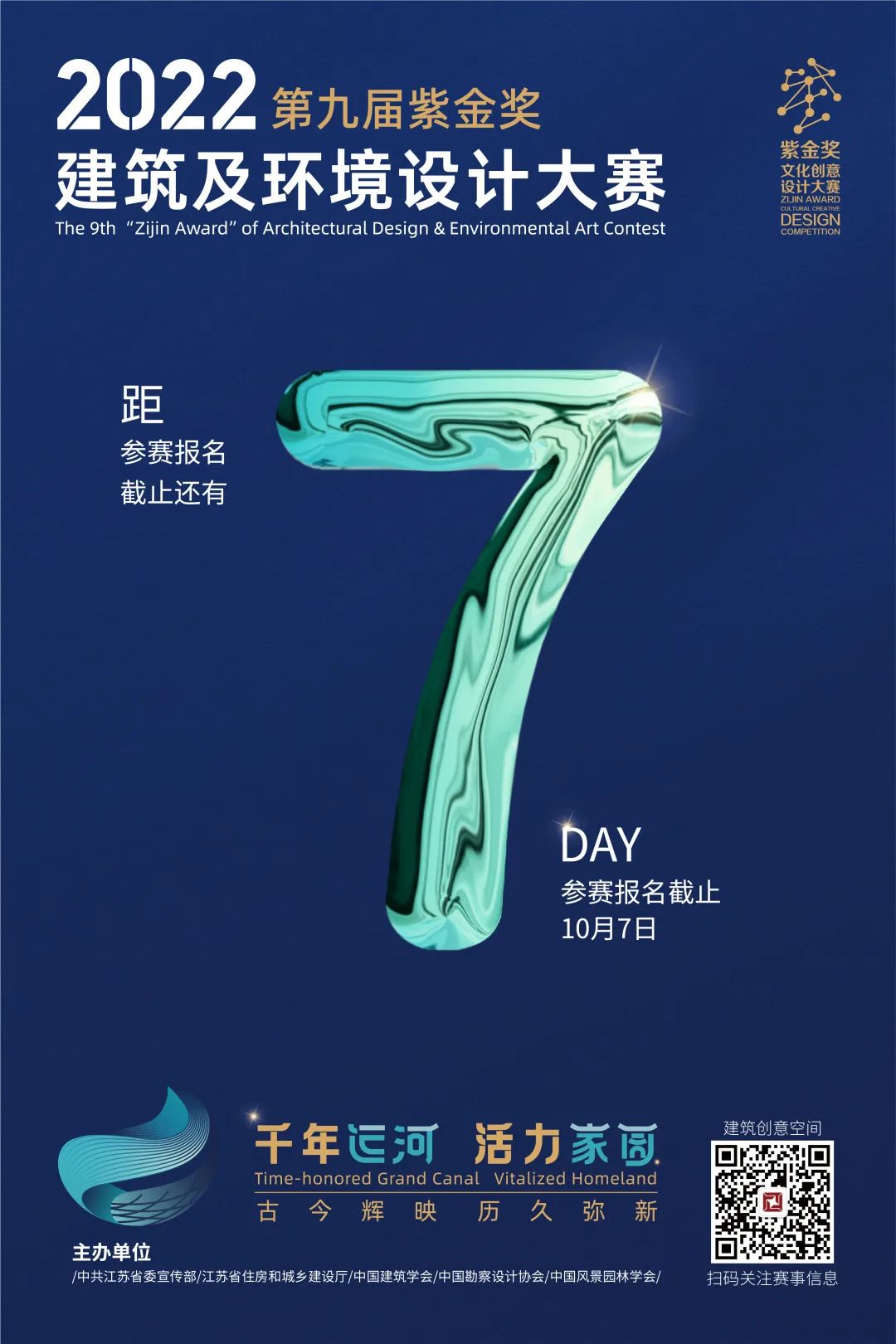 距2022年第九届“紫金奖•建筑及环境设计大赛”报名截止时间只有7天啦!