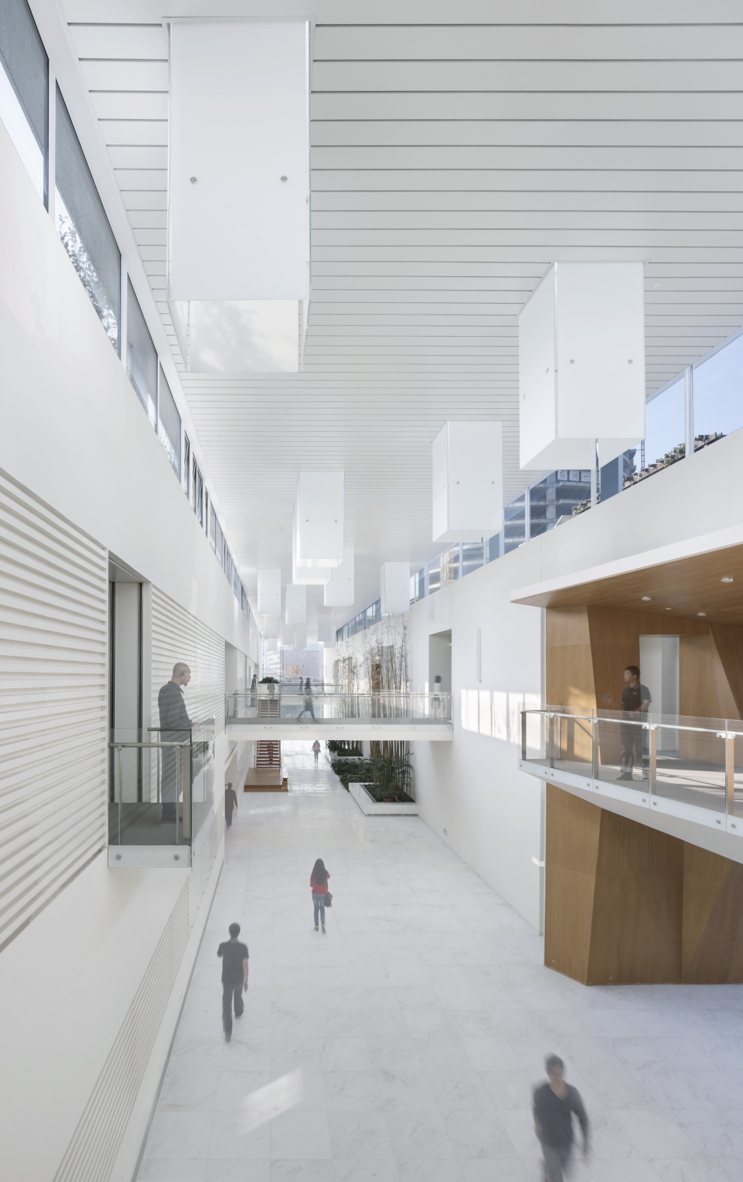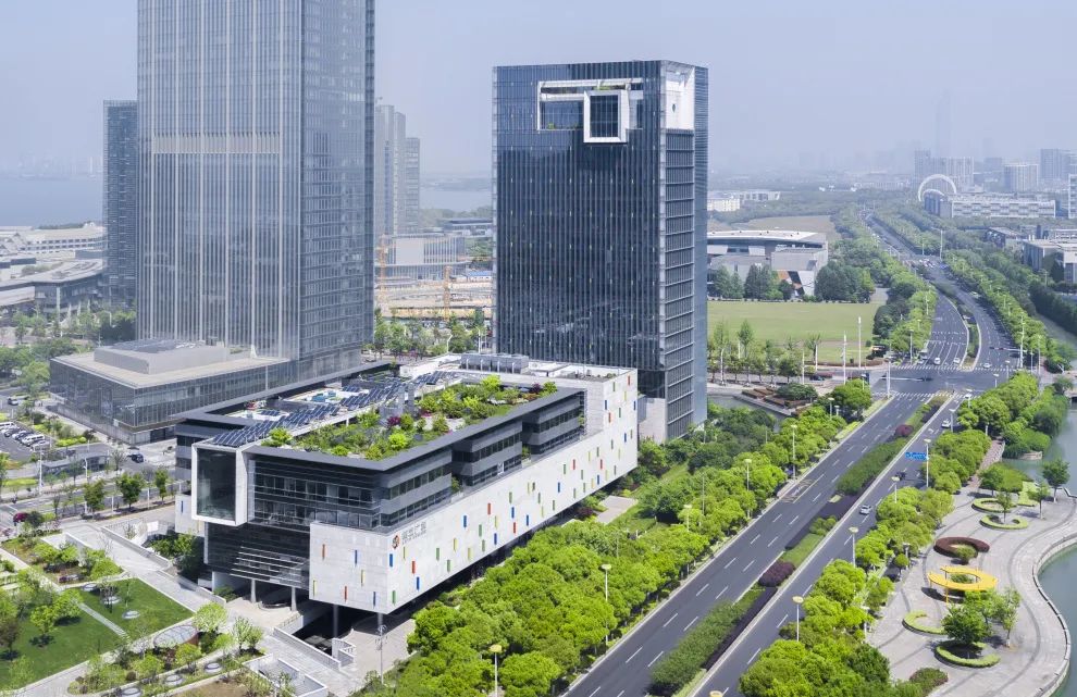 大厦设计借鉴苏州民居的空间组合手法,并把地域文化、园林意境穿插于各个空间之中,在创造了高品质办公空间的同时,也提供了体验园林意趣与艺术熏陶等多重体验。
