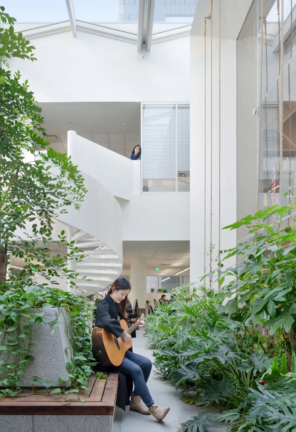 同时,建筑延伸空间功能,打造开放性画廊、展廊,定期举办免费展览,既满足员工艺术体验,又为市民提供了艺术熏陶的场所,将原本单一的办公建筑转化为丰富人们文化生活的新载体,让更多的人们身临其境地感受建筑、城市和艺术之美。