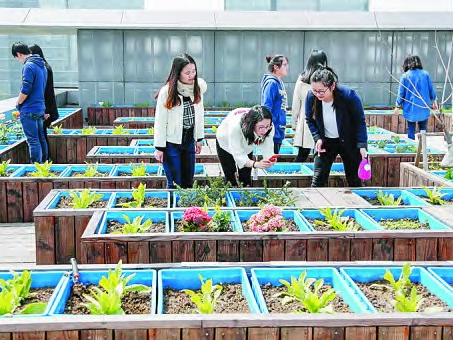 大厦在优化被动设计的基础上,还使用了多种现代技术,使建筑运行以最小的资源消耗发挥最大的使用效率。如西侧屋顶是主动式技术的设备基地,太阳能热水与地源热泵实现了冷热源循环利用;雨水回用将天然水源搬运回园林空间;风光互补的发电系统为鱼塘马达提供电能。东侧屋顶是生活农场,设计师在工作之余可以享受田间劳动之趣,也可以三五成群围坐在咖啡吧台或者屋顶花园散步。
