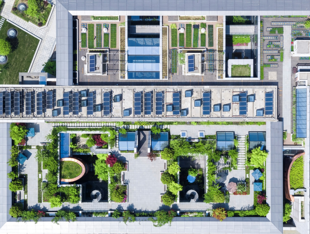 其中,裙房屋顶花园设计为主动式技术的设备基地:太阳能热水与地源热泵实现了冷热源合理应用;雨水回用将天然水源搬运回园林空间;风光互补的发电系统为鱼塘马达提供电能。据数据统计,中衡设计大厦能耗相较同类建筑节省25%,每年可减少碳排放696吨。这种绿色、健康、人文设计理念的融合,表达了建筑对人的关照、对自然的尊重,让人在现代建筑中也能处处体验园林之趣,感受人文关怀。