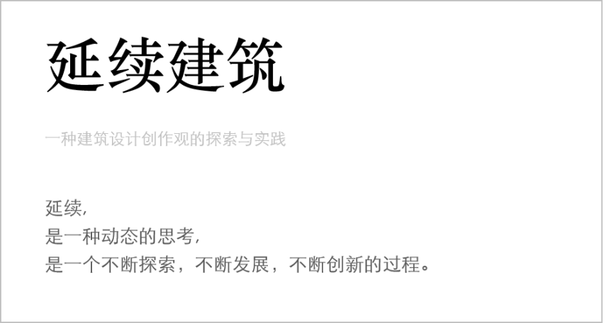 中国有着悠久丰富的历史文化,城市与乡村拥有各具特色的地域文化语境,并呈现出多姿多彩的姿态。建筑设计如何从地域、历史、文化、记忆、故事、风俗、气候等元素出发,将这些元素与设计建立诗意的联系,既实现建筑文化的传承和创新,又能有效化解建筑设计中地域文化与国际模式的冲突?在实践过程中,我们提出了“延续建筑”的创作设计观,即发现、探索与总结建筑所处场地独特的地域、时间、人文、自然、历史、记忆等重要特征,基于当代建筑语境与人本多重需求的基础上,将以上元素延续并创新于建筑设计之中。