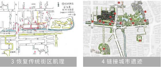 回龙窝原是清代徐州府南的民居聚集区,建造时间逾越两百年。但随着城市发展,这一地段因人口外流、设施老旧而逐渐淡出人们的视野。我们从研究城市入手,对徐州城市变迁的历史脉络进行深入研究,发现了许多重要的历史痕迹和历史遗存,从而制定出文脉拾遗、恢复城市架构、恢复传统街区肌理、链接城市遗迹等设计策略。
