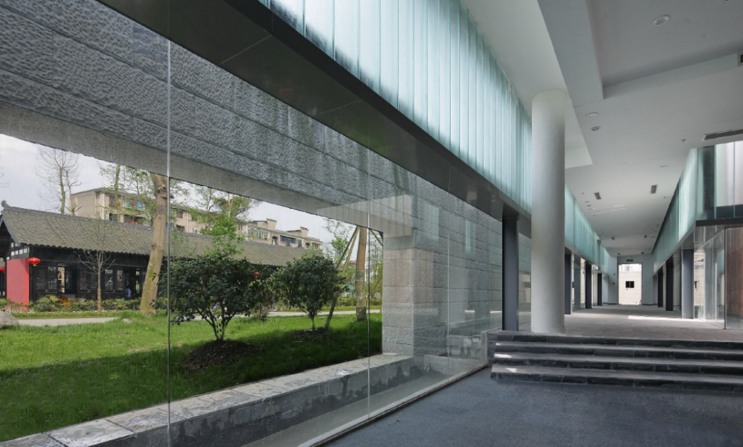 绵竹历史博物馆使用了五种立面材料——石材、木材、瓦、透明玻璃和U型玻璃。我们特意用了当地的石头,指导现场施工人员随机雕琢,经处理后的石材呈现自然古朴的状态,在阳光下会呈现出非常好的肌理,给人一种深厚的历史感。