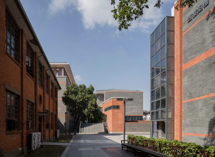 第一个挑战,设计如何与百年校园融合起来?场地空间尺度非常小,如何处理当代教学需求与建筑空间的平衡?