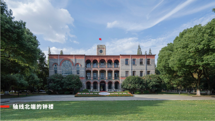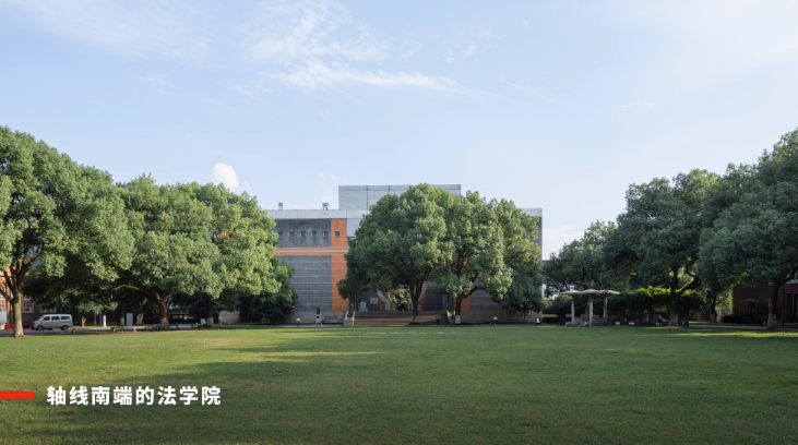 轴线北段钟楼与南端法学院的呼应