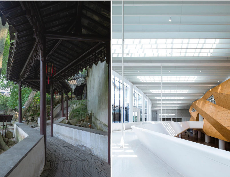 「苏州是中国园林之城。对于我们来说,如何把园林艺术应用到当代建筑设计中是非常重要的。从我个人的设计思考和实践来看,我觉得当代建筑对园林的继承可以从以下两个方面切入:从具象空间逻辑上,把外向性园林、一体化园林,包括城市与建筑之间过渡的园林转译到当代建筑之中。从抽象空间意境上,追求空间的层次、空间的渗透和空间的流动。无论是具象还是抽象,园林的精髓体现为空间、人和自然三者的和谐对话,这也是当代建筑的重要追求。」
