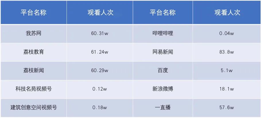 现场之外,决赛同步在我苏网、荔枝教育频道、荔枝新闻、科技名苑、网易新闻、百度、新浪微博、哔哩哔哩、一直播等平台进行网络直播,累计观看量约348.78万次,得到社会广泛关注和参与。