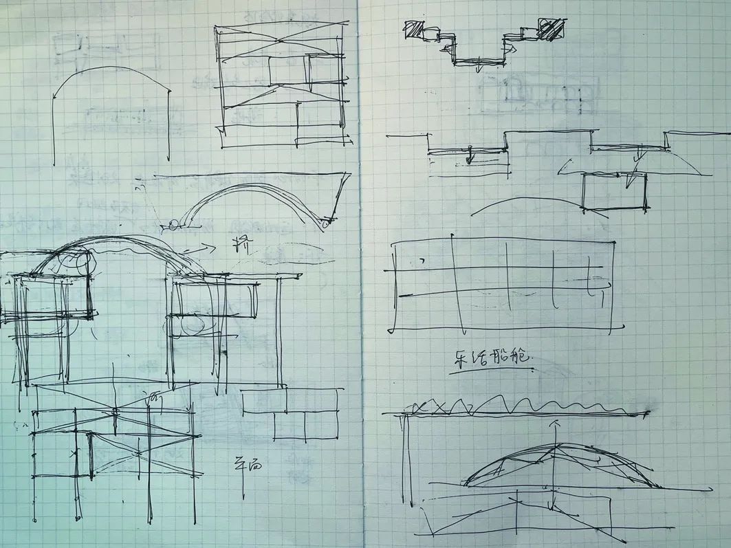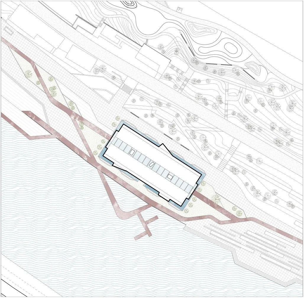 设计师有强烈的场所营造精神,善于从环境要素中抽取、转译与建筑相关联的特征,并将其融入具体手法。通过对运河的“引入”及对浮船底部意向的表现,旧厂房在立体竖向维度上有了明显差异性的处理方式,形成了可观、可游、可思的新空间。在与历史场景对话的同时,设计方案为自然采光、通风等物理需求提供了解决的可行性,为旧船厂新生提供了有趣的思路。由于未提供负一层平面,对评判设计的整体性和可实施性带来了一定难度。同时,建筑的基本功能、疏散安全等方面还存在一定提升空间。