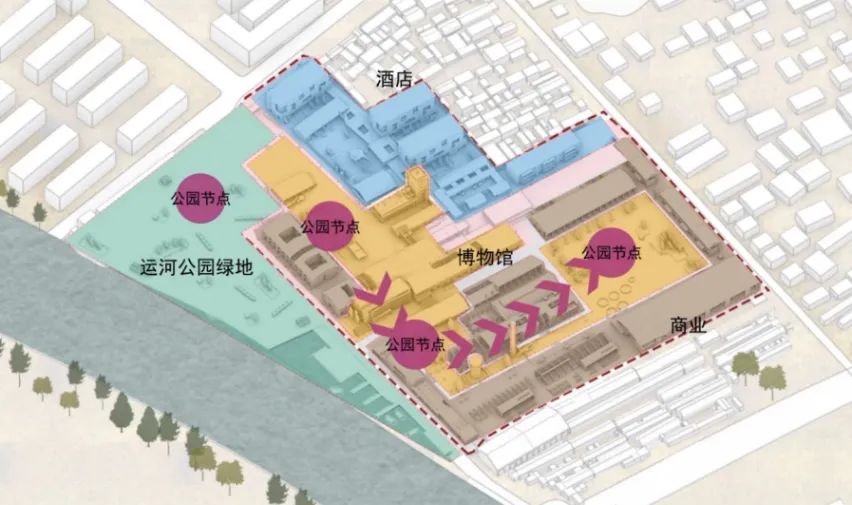 设计如何回应厂区与盐河(大运河支流)之间既存的紧密空间关系?