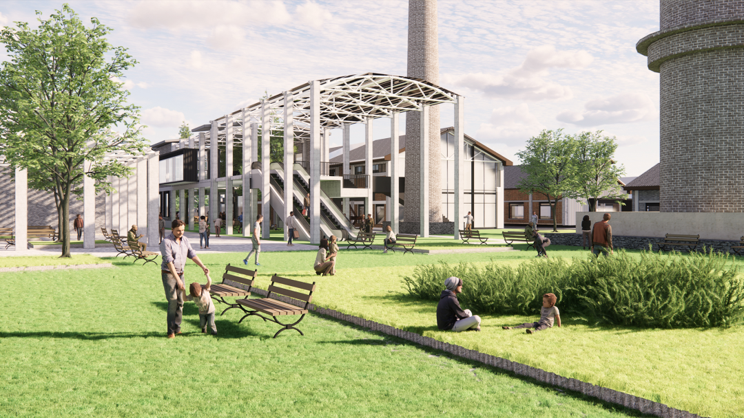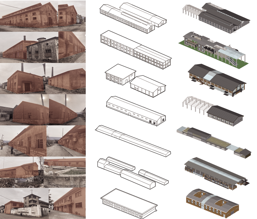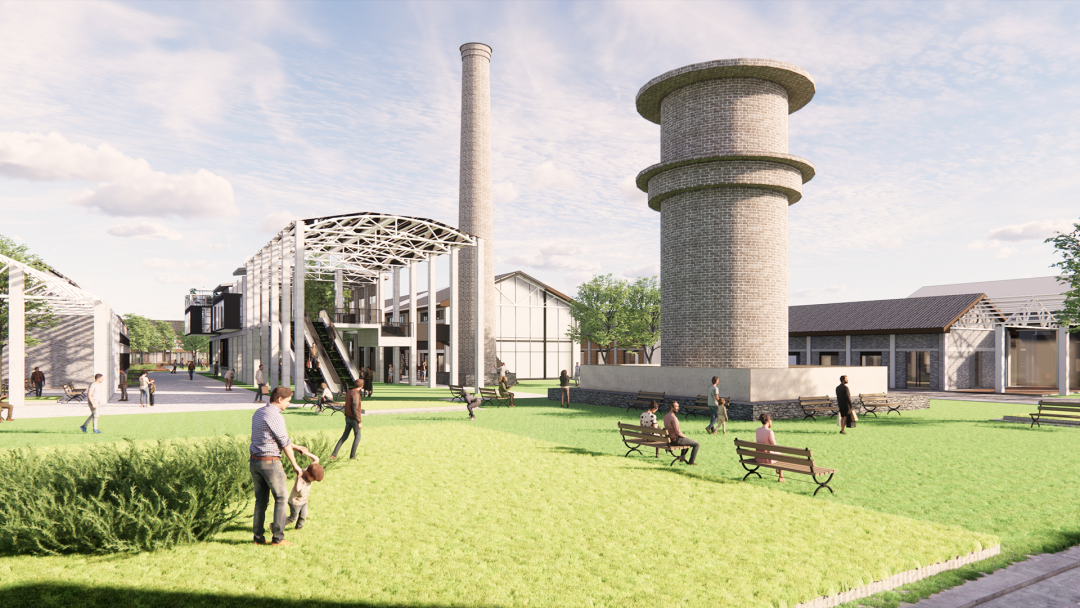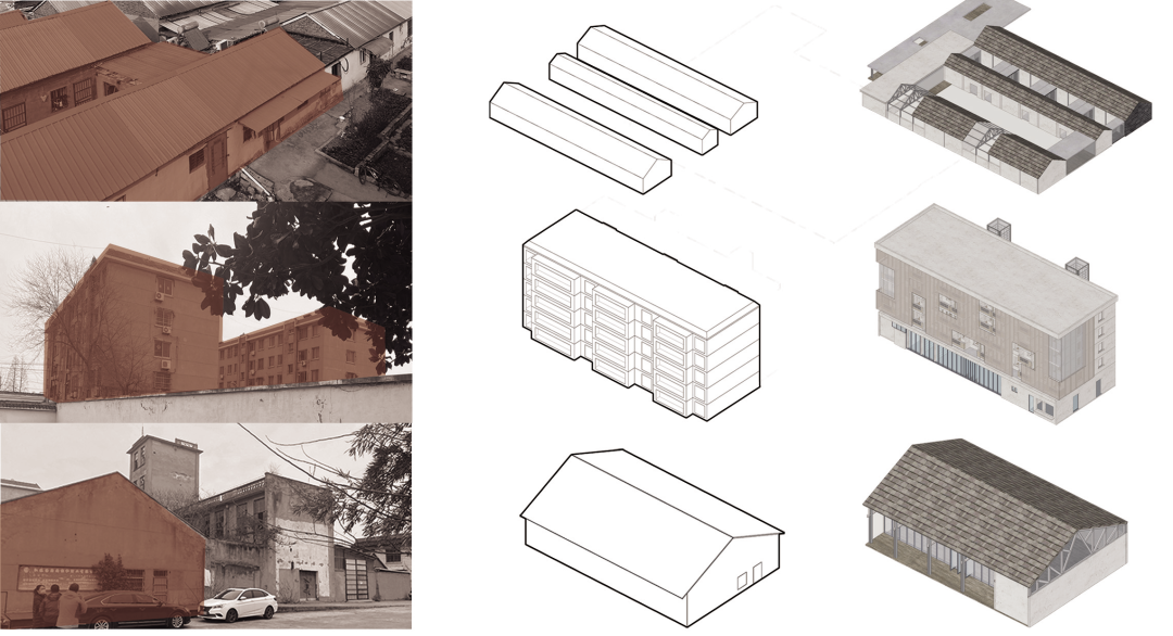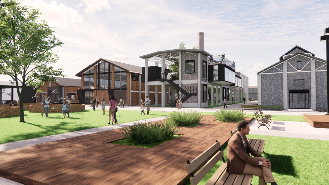 在深入分析研究集镇发展现状和需求基础上,方案将厂区旧址设计为三个功能组团——博物馆组团、商业组团、酒店组团。