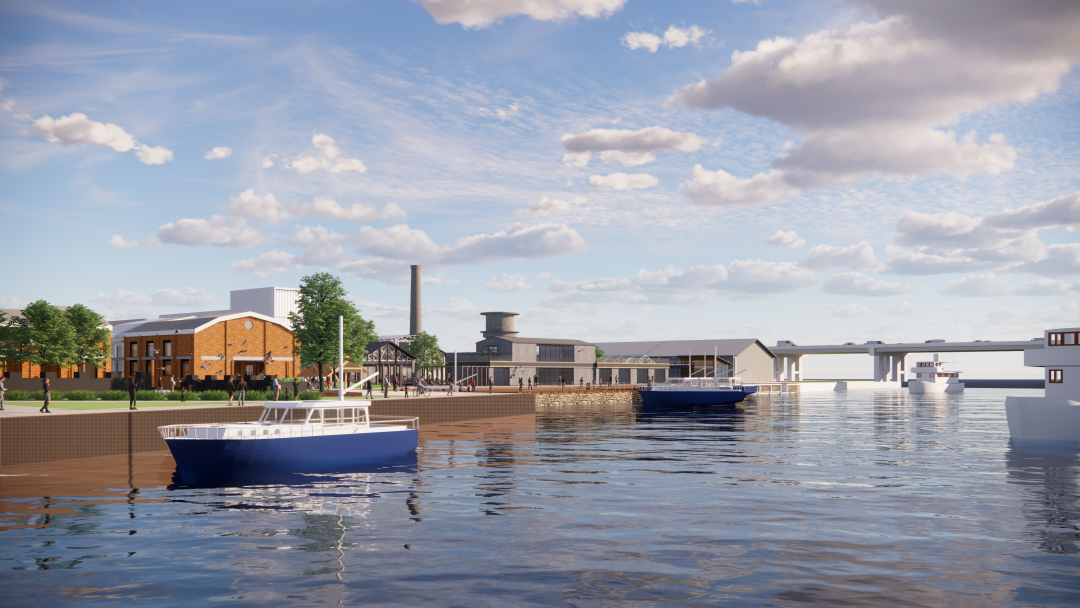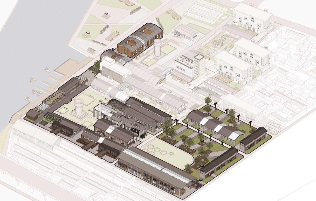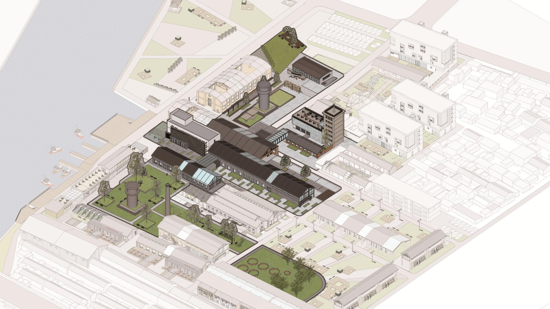 在整体空间功能布局方面,设计方案保留了富有纪念意义的水塔、烟囱、油罐、面粉厂等历史文化遗存,以新增的厂区博物馆为核心来组织空间功能,并在其周边设计若干个纪念性广场,联动地块滨水空间的更新,形成整体文化景观空间。