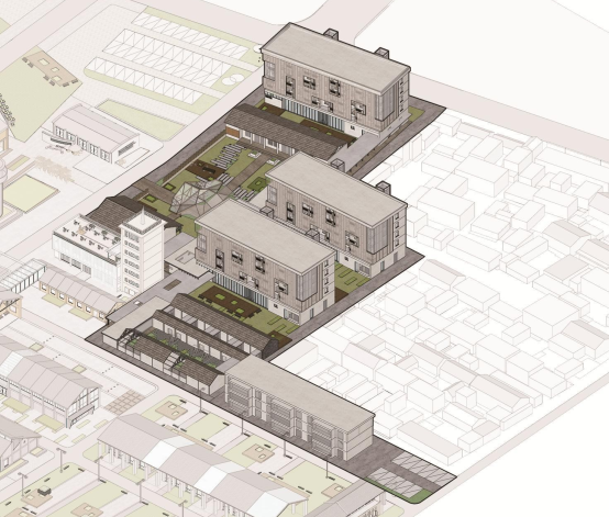 博物馆组团以展示酿酒、榨油、制面等传统工艺为主。商业组团整合场地中的零散建筑,结合周边道路布局形成沿街商业。酒店组团适当集中,提供一站式的功能配套服务。