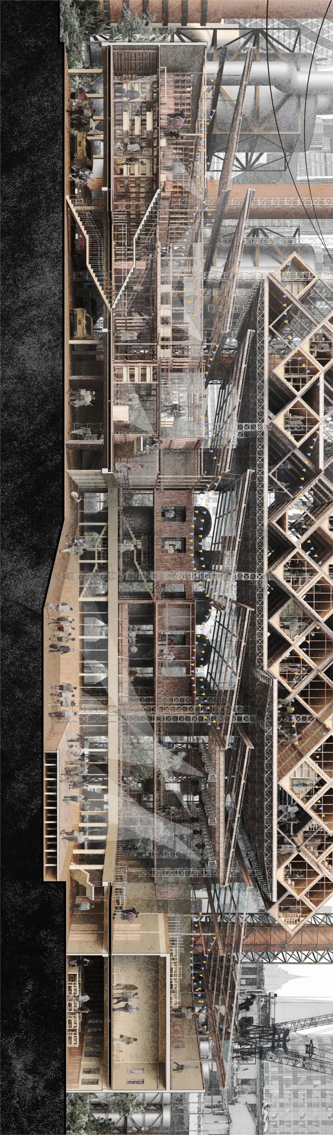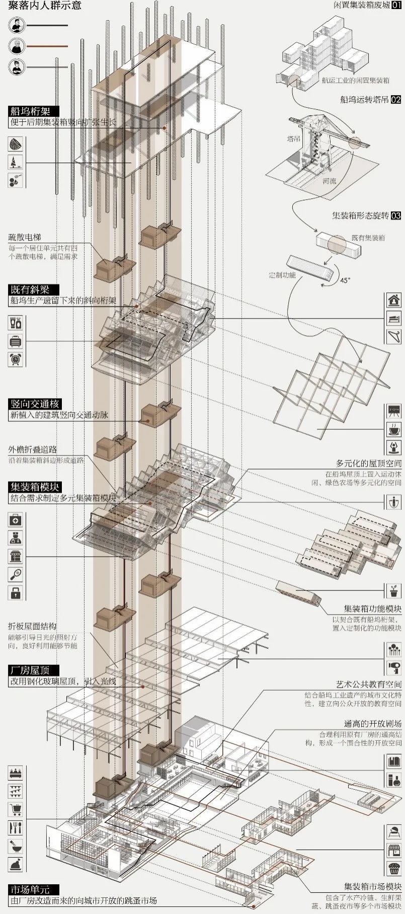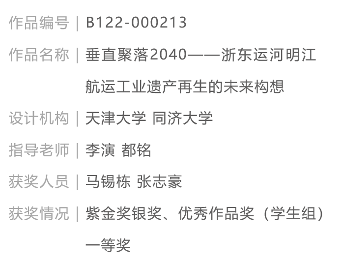 银奖作品荐读 | 垂直聚落 2040——浙东运河明江航运工业遗产再生的未来构想【天津大学 | 同济大学】第九届紫金奖建筑赛