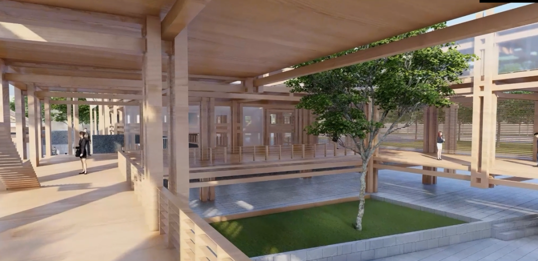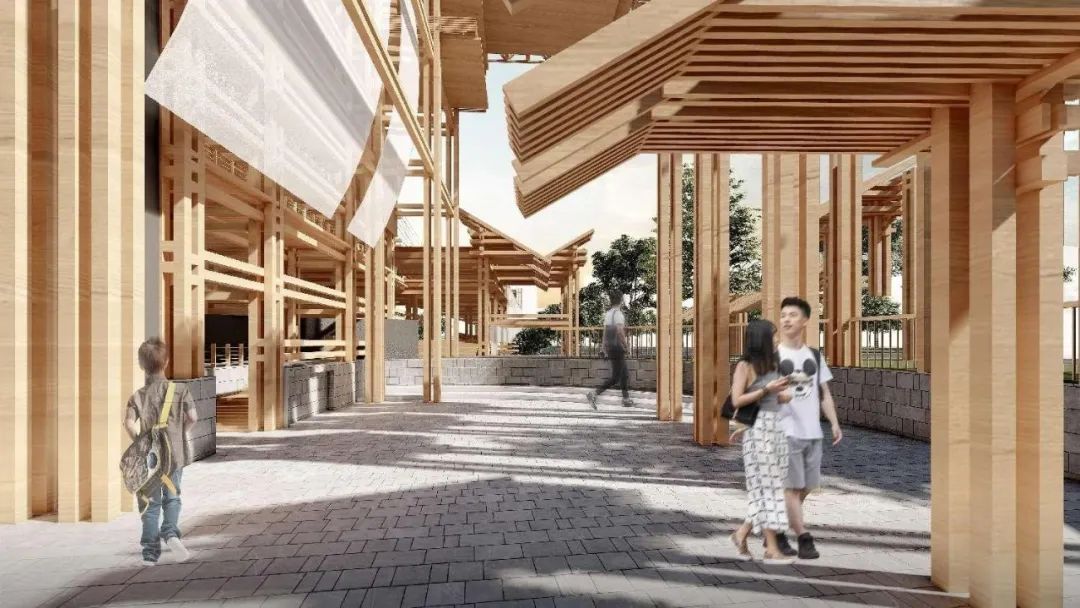 驿站设计以原生态的“竹”为主材,通过现代木结构方式与传统营造理念相结合的方式,应用现代感的造型和曲线,探索传统文化的创意表达和可持续利用路径。同时,驿站以错层、架空等手法,营造层次丰富、趣味多样的空间,增补完善社区配套设施和服务。