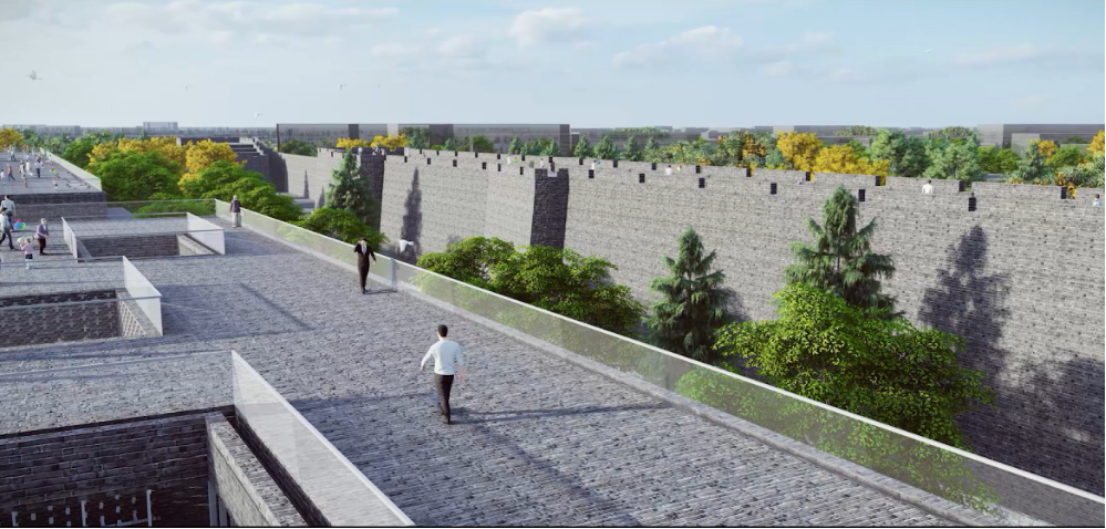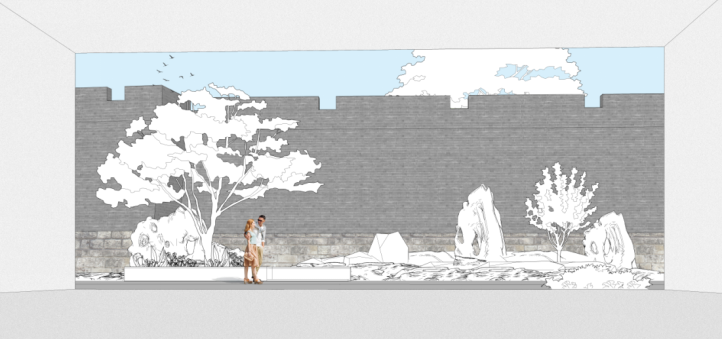 如何将城墙文化与本案联系起来?同时与周边现有文化遗址、景观公园进行关联?我们计划在基地设计一处古城墙文化展示馆,以更为巧妙地展示古城墙丰厚的历史文化资源。