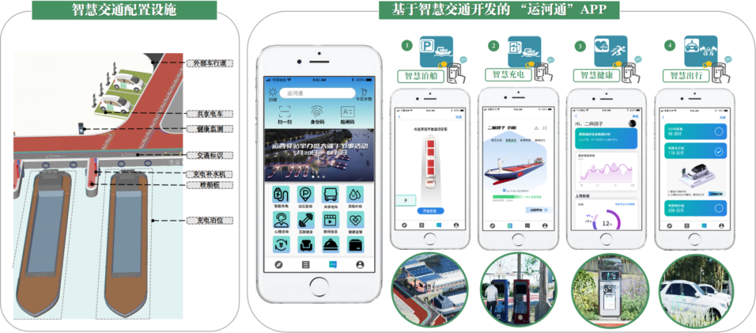驿站提供全方位的智慧泊船、充电、补水、健身、电车代步等服务。在船舶行驶过程中,跑船人可通过智能手机,随时了解驿站的泊位和服务信息。上岸后,驿站智慧步道等相关设备会主动收集跑船人各项健康指数,并提供科学的健康生活建议;设置智慧共享电车系统,为跑船人提供临时进城采购的代步工具。