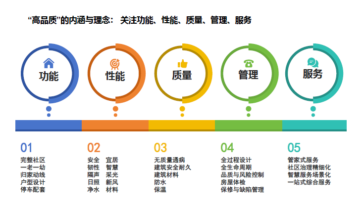 改善型住宅的品质可以归纳成质量、功能、性能、管理和服务五个方面,即全过程、全要素的高品质。