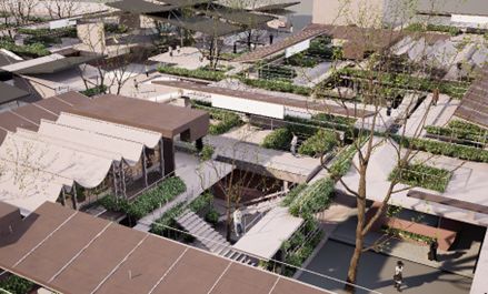 例如:在园艺展区环境鼓励生活美学零售、艺术家工作室等业态,开设课后第二课堂,让周边儿童在亲近自然的环境中培养兴趣爱好;二层的半开敞林间餐厅,可承载时尚餐饮、娱乐休闲等多种公共活动,将以全新的空中街巷场景诠释商业与生态的共融。未来的马镇农贸市场,不仅是共享的园艺展区,更是满足居民日常需求的邻里交互场所,还可以是培育新服务业态的空间载体。