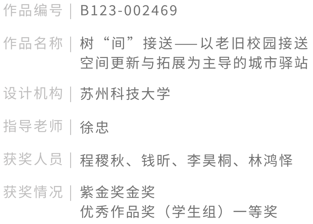 第十届金奖作品荐读 | 树“间”接送——以老旧校园接送空间更新与拓展为主导的城市驿站【苏州科技大学】