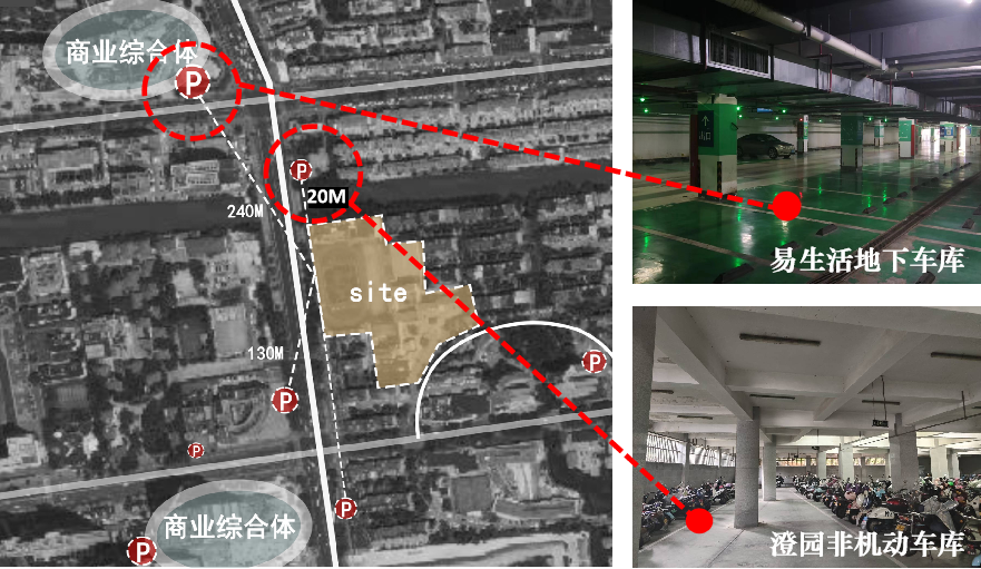 △ 设计基地区位图和现状实景(左右滑动查看更多)