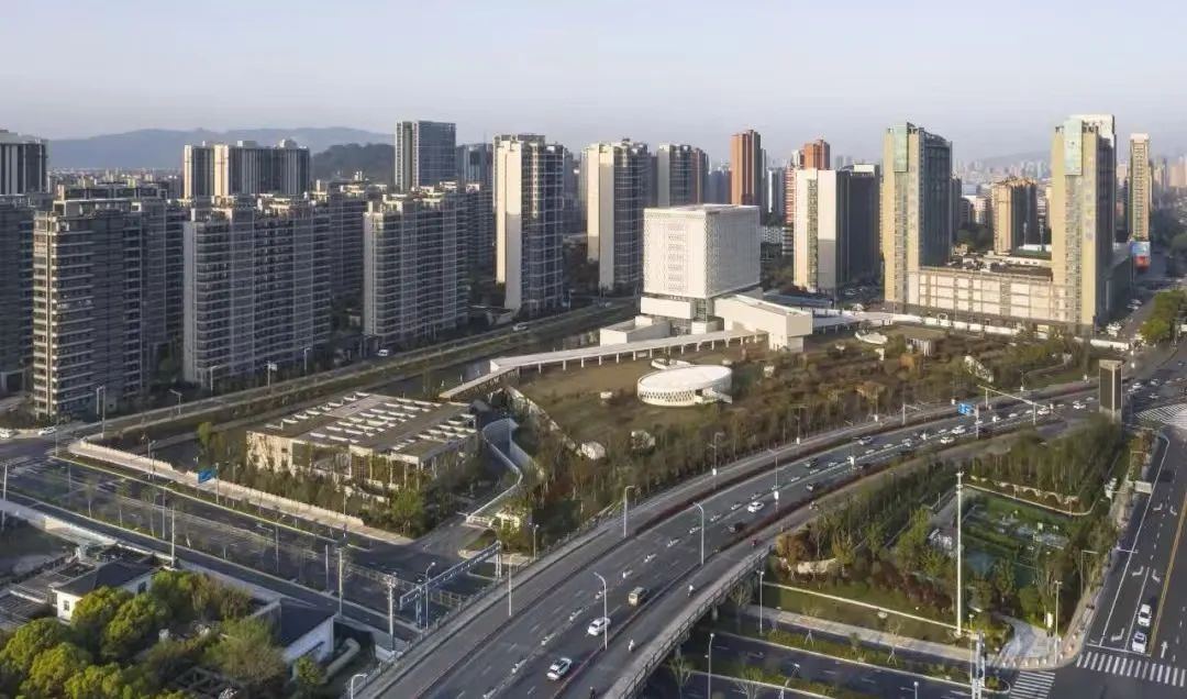 苏州高新区狮山水质净化厂是一所易址新建处理规模10万吨/日(土建)的全地下污水厂,采用“迁建全地下厂+地块开发”的叠层模式,北侧地下为污水处理设备车间,地上为城市公园及停车场,南侧为厂区办公建筑。