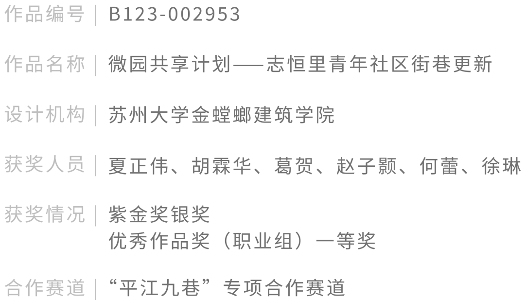 第十届银奖作品荐读 | 微园共享计划——志恒里青年社区街巷更新【苏州大学金螳螂建筑学院】