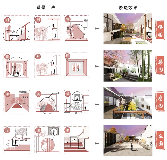 设计在保留延续志恒里巷院空间及建筑肌理的基础上,通过对传统园林中“对、框、借”等造景手法进行现代转译与运用,来丰富空间层次。