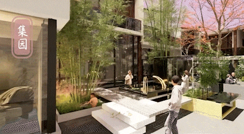 槛合为集,友邻合欢。集园作为微园邻里空间,可为青年人提供社区服务,同时也是喝茶、聚会、娱乐的邻里场所。
