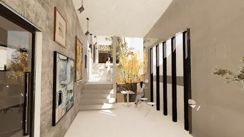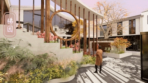 阶上为梯、观艺集雅。梯园作为微园秀场,是青年人展示个人才艺、观看演出的场所,可在此办展览、小型音乐会等。
