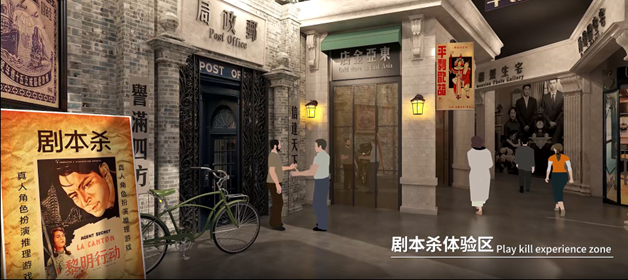 三栋民国建筑是历史的见证者。因此,在进行修旧如旧的修缮后,在实体建筑里植入主题书店、文创咖啡等业态,借助虚拟现实技术搭建虚拟历史场景,让实景的社区生活和虚拟的剧本杀沉浸式体验在老建筑上实现“邂逅”。同时这种模式也可以复制到城市其他IP,以点带面点亮整个城市的“历史邂逅”。
