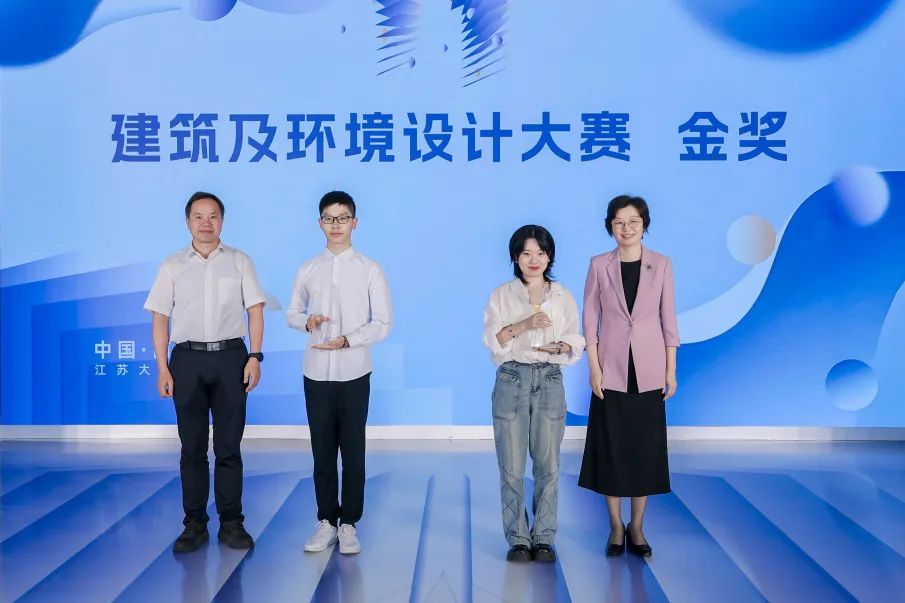 嘉宾为建筑及环境设计大赛金奖获得者颁奖