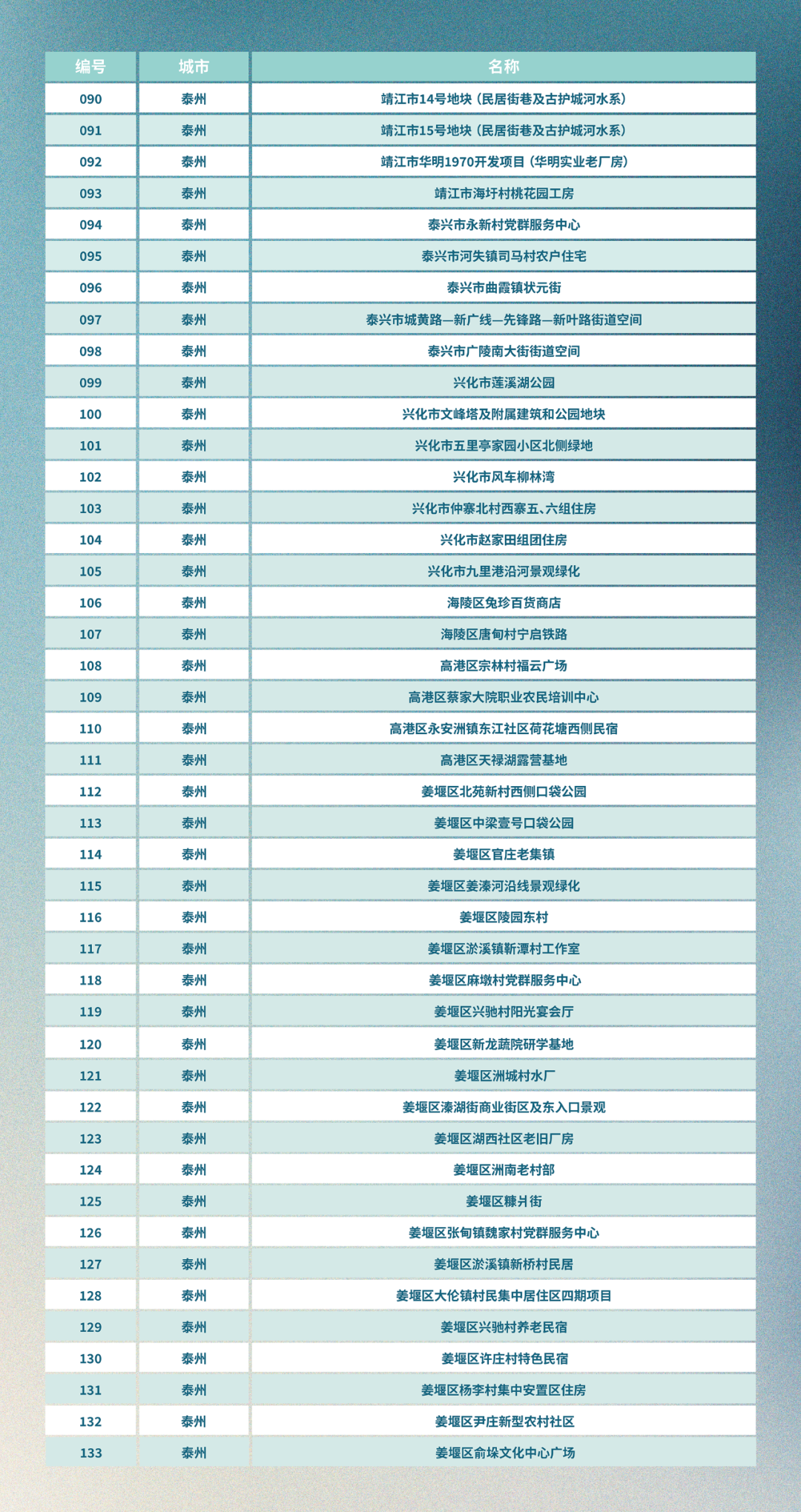 123 | 姜堰区湖西社区老旧厂房 | 丁晨 周业存 | 13952644699 15252654616 |