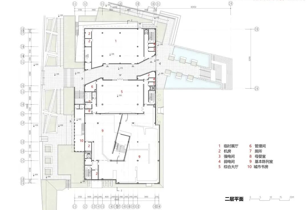 本建筑以鲜明的红色主题为引领,充分呼应并融入场地特征,是一座集南京党史资料保管、征集收藏、学术研究、宣传教育、展览交流等多功能于一体,同时服务于滨江城市景观塑造、并为市民提供文化休闲体验的城市综合体。建筑内部主要涵盖六大功能板块:南京党史展示中心、党史文物征集研究与收藏中心、党史资料信息中心、游客服务中心、对外服务区以及业务管理区。这一综合性布局,不仅确保了党史教育传承的系统性与专业性,也强化了其公共文化服务职能。
