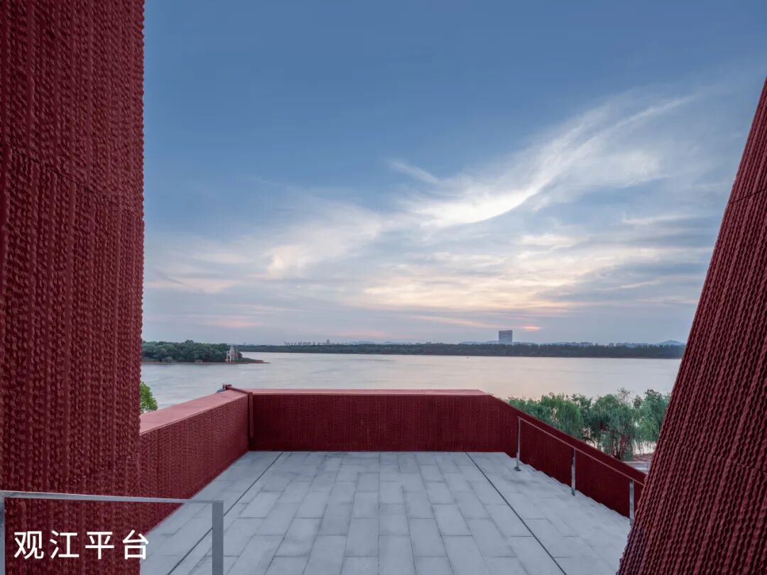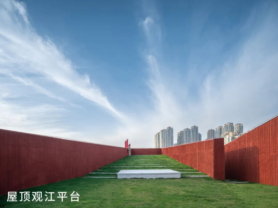 设计充分拓展了建筑对城市开放的公共属性。除了党史展示、教育、交流空间外,增设了“城市驿站”空间,包含游客服务中心、滨江主题书吧、茶饮休息、志愿者服务等。五角星通廊不仅连接了城市空间与长江景观,也是全天候开放的城市休憩场所。