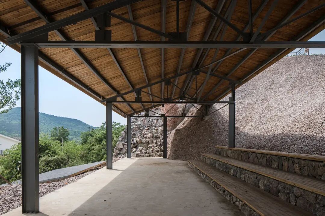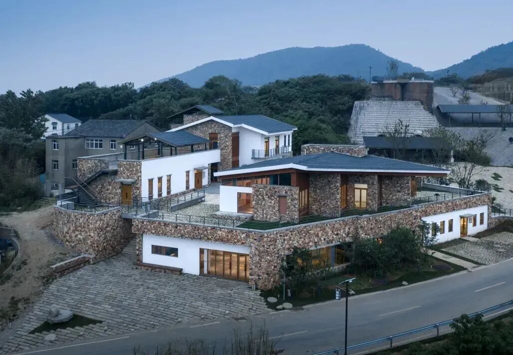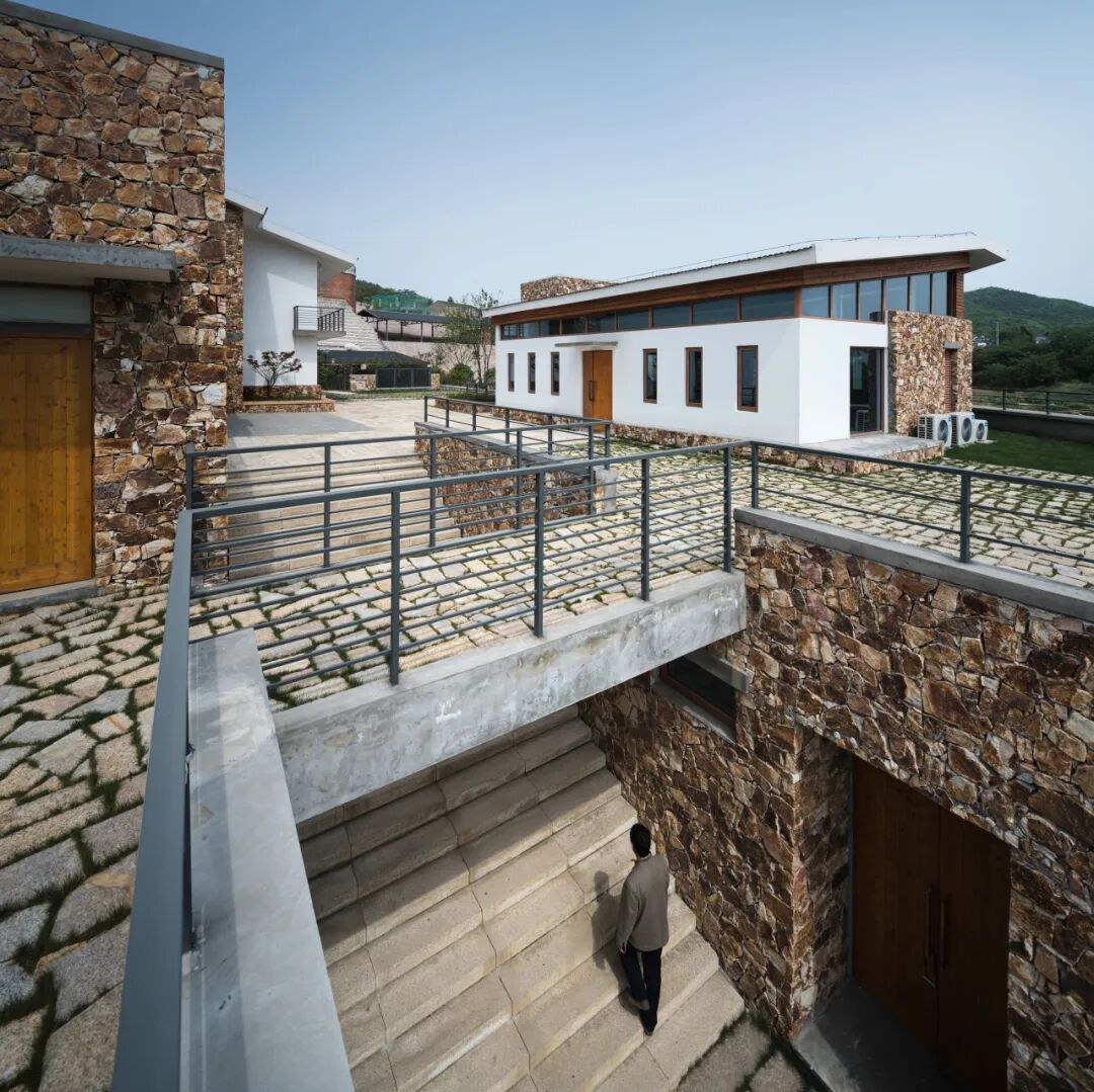 聘请本地工匠来实践并传授传统砌筑手法和经验。强调材料的乡土性,建筑外立面为石材砌筑,利用当地植物和旧窑厂遗留的石子等当地材料来进行景观营造。在设计到建造的各个不同阶段都践行在地性策略。
