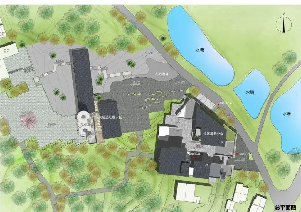 项目由两部分组成:服务办公区和古灰窑展示区。包含社区服务、会议、休闲和灰窑旧址展示四个功能。