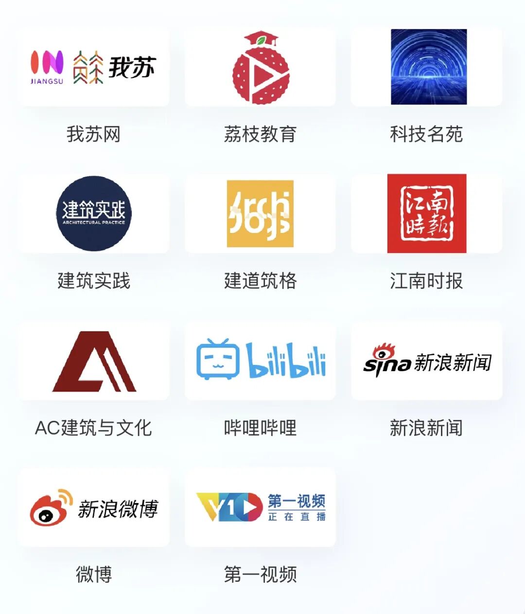 现场之外,我苏网、荔枝教育、科技名苑、建筑实践、建道筑格、江南时报、AC建筑与文化、哔哩哔哩、新浪新闻、新浪微博、第一视频等多平台将进行网络直播,敬请关注!