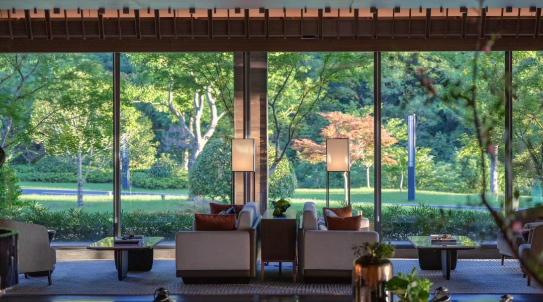 宜兴凰川酒店的微气候调控体系展现了山地环境的适应性策略:夏季利用东南风与热压效应形成穿堂风,冬季通过“北高南低”布局与挡土墙植被减少冷风渗透。立面设计更是技艺合一:深挑檐与竖向格栅阻挡直射阳光,宜兴本土陶土瓦兼顾防水抗霉与隔热性能,木纹水泥纤维板则实现了水泥强度与天然木纹美感的统一。