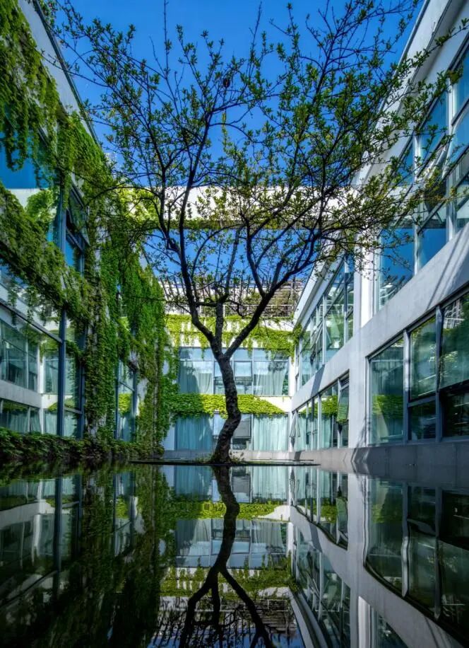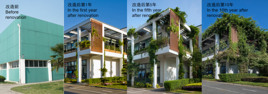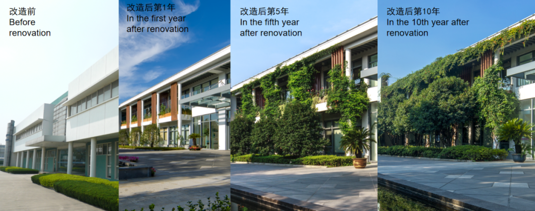 星海街9号的改造始于一个朴素的探索:传统元素如何为老工业建筑注入新生命?这座老厂房的结构被完整保留,设计团队将苏州老宅的天井引入这座80*80米见方的建筑核心,这些窄小却精巧的“自然之肺”,让光线与清风穿透建筑肌理。外廊元素被转化为绿植覆盖的绿色走廊,十年间,植物的生长起到很好的遮荫效果,夏季室温可降低6度,建筑随四季流转焕发不同的景致,良好地呈现了传统文化创新对传统空间意境的“再发现”。