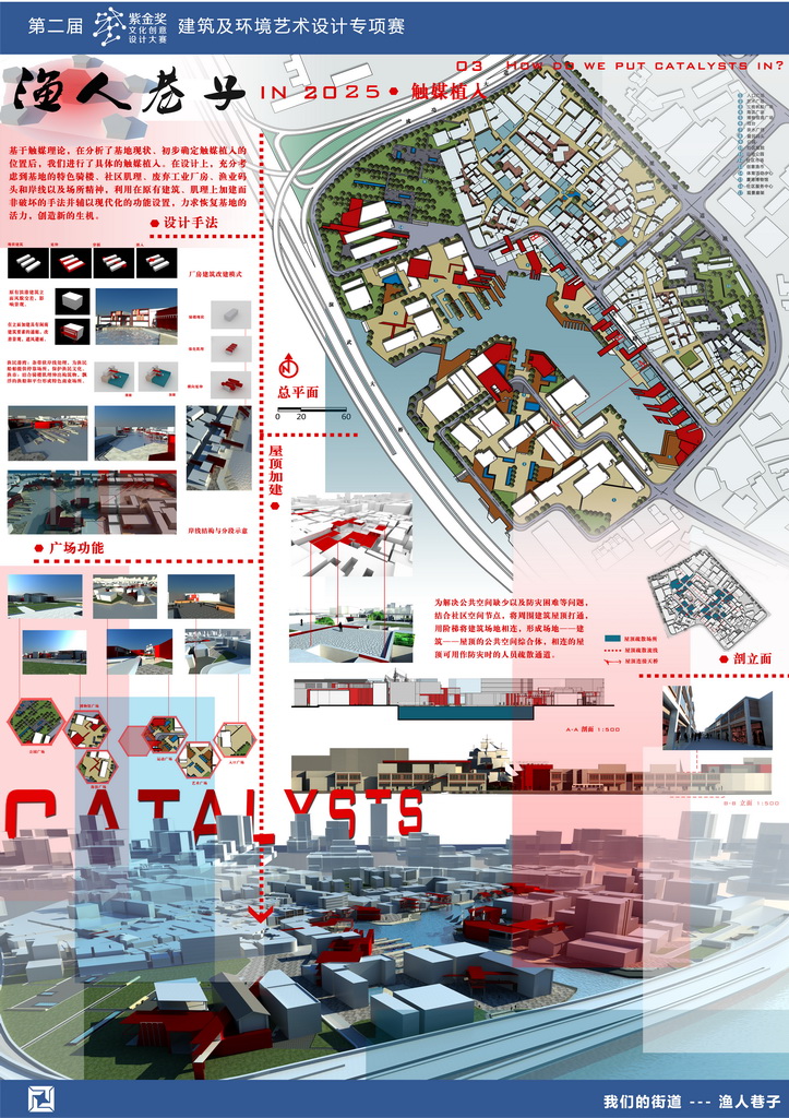 以触媒理论为基础,对所选基地现状进行要素提取。在现状中植入物质与非物质的触媒提出了老街区的建筑改造策略。通过触媒的作用引发街区建筑的持续性改进,从而营造活力社区文化核心。