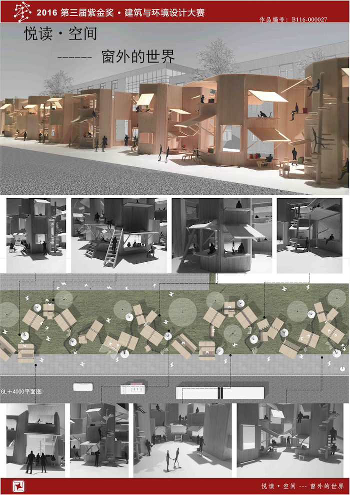 本方案试图对高校围墙内植入“一扇扇窗”,墙内外可以透过窗阅读外界的同时,希望能创造一种新的交流环境。