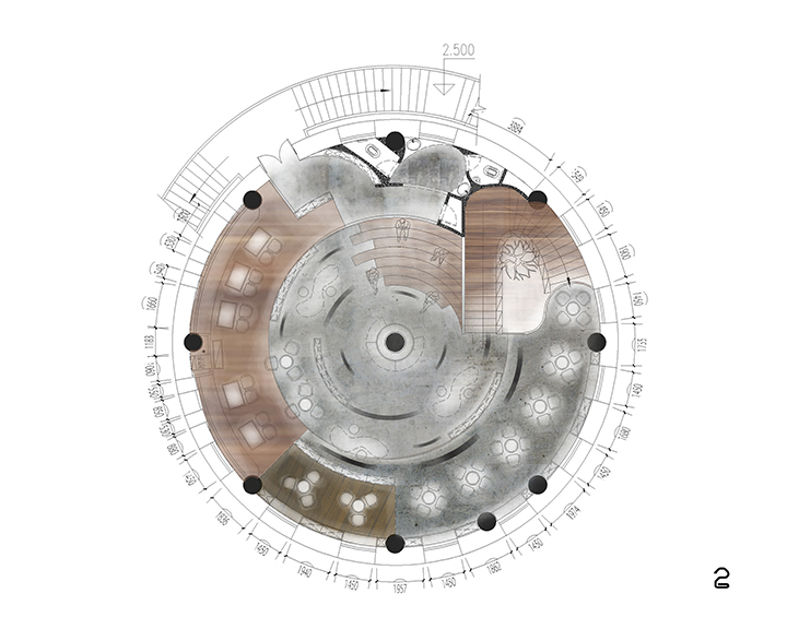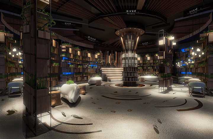 闲暇悠漫的空间整体调性,仿佛让时光慢了下来,让人们可以享受生活的安逸与无忧。空间整体的交通序列遵循环形回廊式布局,就像秒针、分针、时针一样在不停地转动。二层空间还设有公共式阅读区,在这里可以召集各行成功社会人士前来传经授课,既享受了这里的美食,又能结交良友,生活与学习、阅读与美食何时又岂能分得开呢?